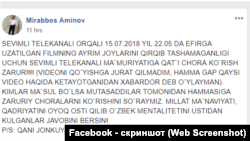 Между тем, показ на телеканале Sevimli TV зарубежного фильма с интимными сценами вызвал бурную дискуссию в узбекском сегменте социальных сетях. Некоторые пользователи выступили в защиту телеканала.