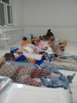 На видео- и фотоматериалах, отправленных в редакцию «Озодлика», изображены две женщины, сидящие на одеяле, и еще одна женщина, кормящая грудью своего ребенка, расстелив одеяло на полу.