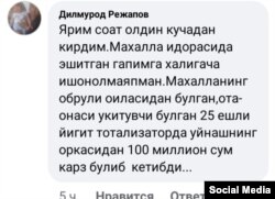 «В Хорезмской области азартные онлайн-игры стали основным занятием молодежи. Я знаю 3-4 таких парней. Один из них проиграл 50 тысяч долларов, другой 40 тысяч долларов, еще один проиграл более 10 тысяч долларов. Это те, кого я знаю лично».
