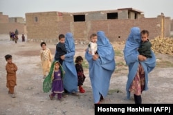 Женщины с детьми, бежавшие от боевых действий в Герате.