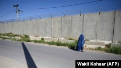 Женщина в бурке проходит возле бывшей военной базы США в Баграме (1 июля 2021 года). Некоторые исламские фундаменталисты утверждают, что Коран обязывает женщин полностью покрываться в публичных местах.