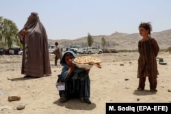 Женщина с детьми в Кандагаре. Фото сделано 4 августа 2021 года, когда на окраинах города велись бои между правительственными силами и талибами.
