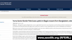 В начале этого месяца Таможенно-пограничная служба США сообщила о задержании на участке Юма нелегальных узбекских мигрантов, пытавшихся попасть из Мексики в американский штат Аризона.
