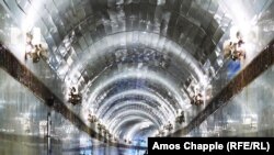 Сияющий переход, связывающий две станции метро. После разрушительного землетрясения в Ташкенте в 1966 году, по сообщениям, была уменьшена глубина метро, а своды туннелей, пролегающих всего в нескольких метрах от поверхности, дополнительно укреплены.